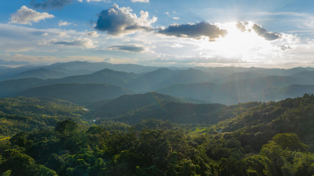 This is the scenery of Jingmai Mountain in Pu ‘er, Yunnan at sunset (photo of drone) taken on September 16th, 2023. Xinhua News Agency reporter Hu Chao photo